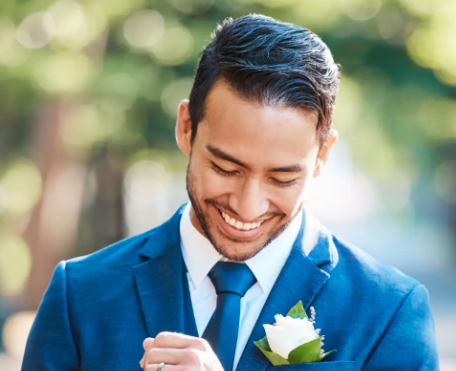 Indulge in luxurious fabrics such as premium wool and silk blends, carefully selected for their softness, drape, and breathability. Our suits are tailored to perfection, offering unmatched comfort and freedom of movement as you exchange vows and dance the night away.